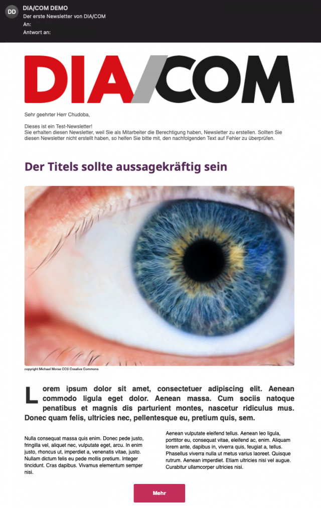 Mit DIA/COM CMS+ lassen sich schnell und einfach Newsletter erstellen. Dabei greifen Sie auf gespeicherte Inhalte und Kontaktdaten zu, ohne diese an Dritte übermitteln zu müssen.