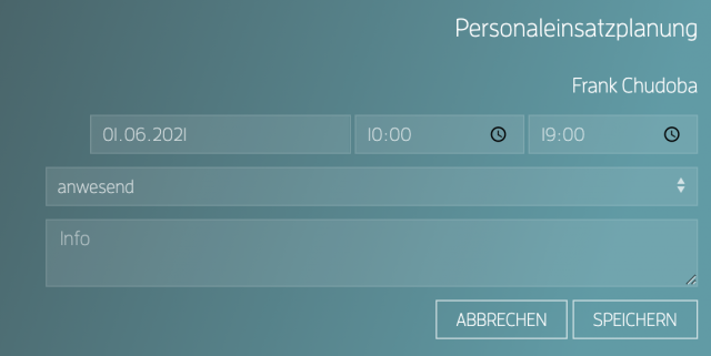 Als Start- und Endzeit wird automatisch die hinterlegte Öffnungszeit berücksichtigt.